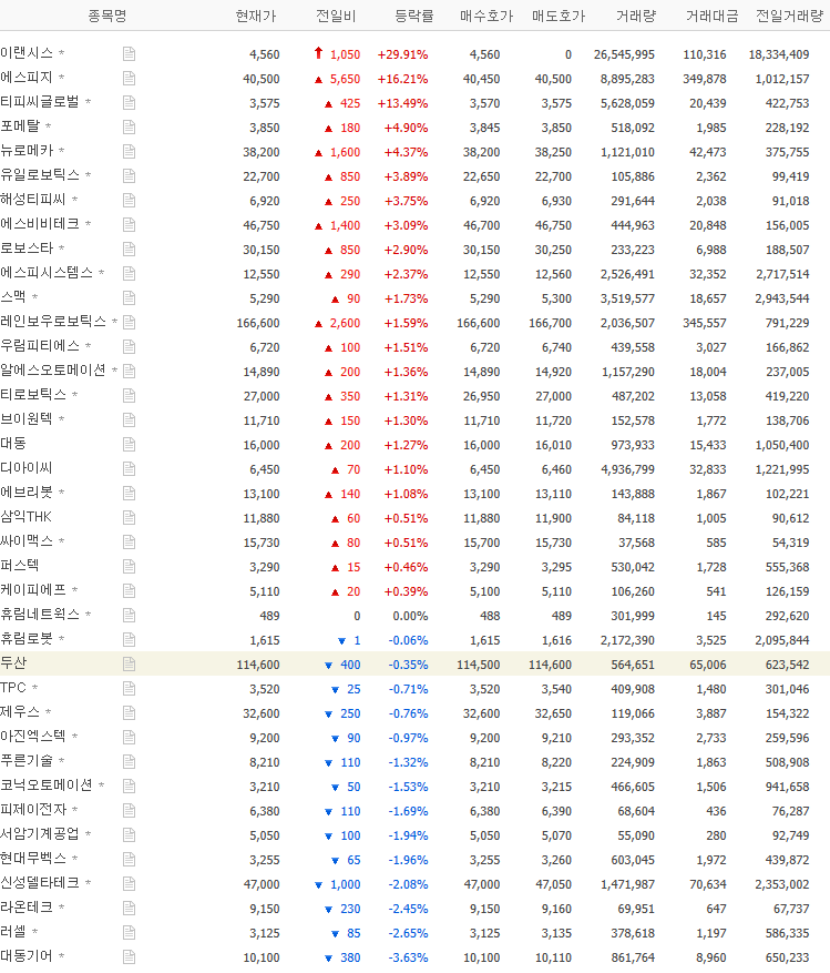 사실 로봇주는 굉장히 많습니다. 약 30여개 기업으로 보이는데 이중에서 대장주, 관련주에 대해서 살펴보도록 하겠습니다.