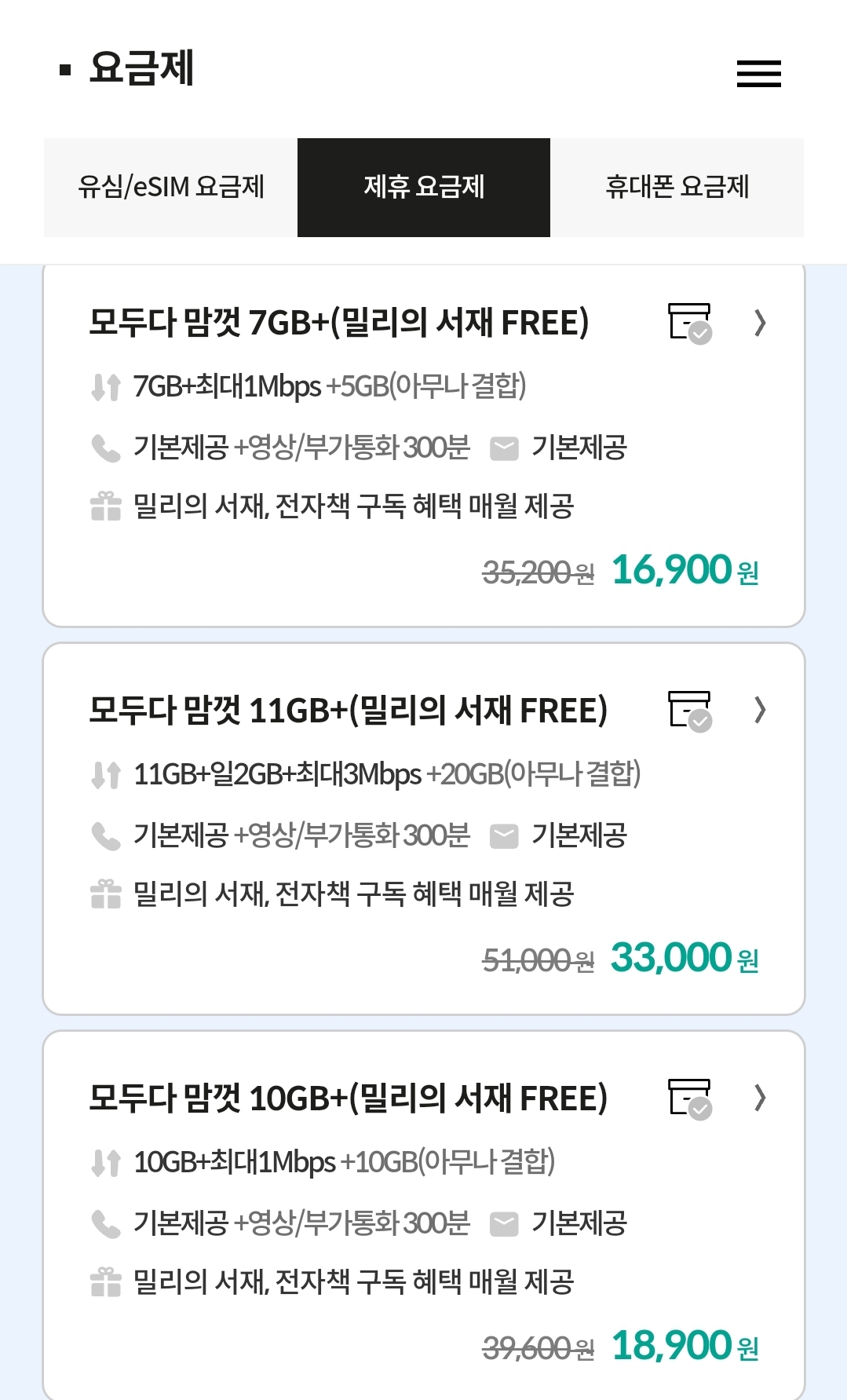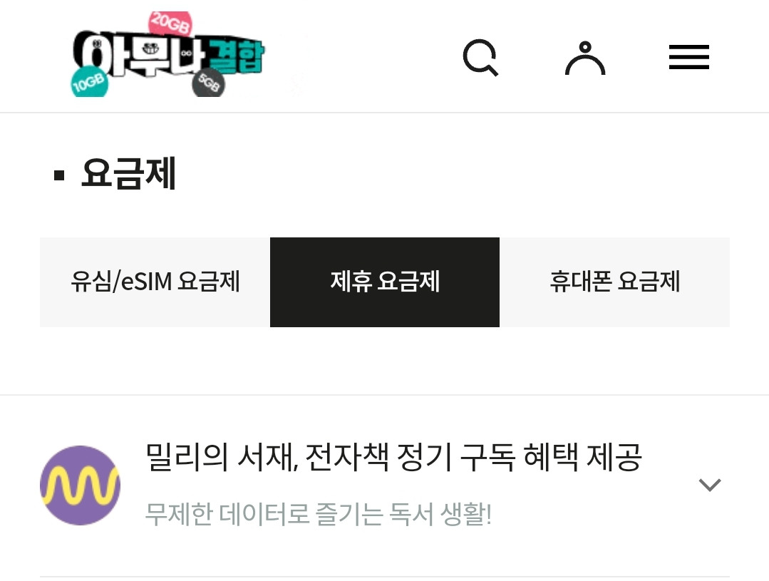 밀리의 서재 구독권을 무료로 이용할 수 있도록 제휴 요금제를 제공하는 KT엠모바일 홈페이지를 방문하여 본인과 맞는 사용량인지 확인해보시고 서둘러 신청해보시길 바랍니다.
