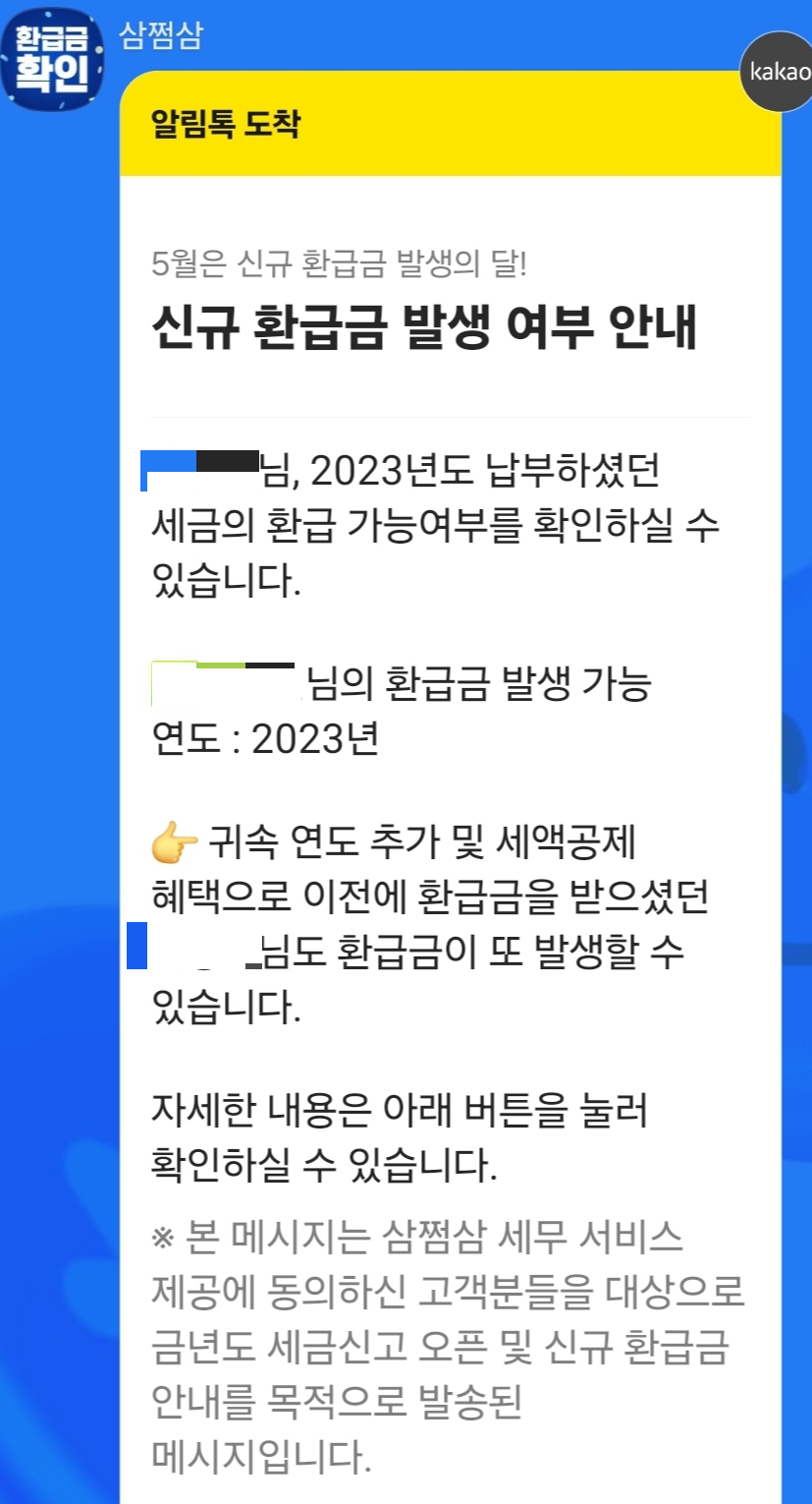 국세청 홈택스 종합 소득세 시즌이 돌아왔습니다. 종합소득세 신청은 5월 1일부터 5월 31일 기간 내로 진행해야 합니다. 저 같은 경우 홈택스에서 진행하는 경우 금액이 더 적은 느낌이 들어서 삼쩜삼 또는 토스 세이브잇을 통해 진행할 예정입니다. 역시나 5월이 되니 삼쩜삼에서 안내톡이 도착했더라고요.