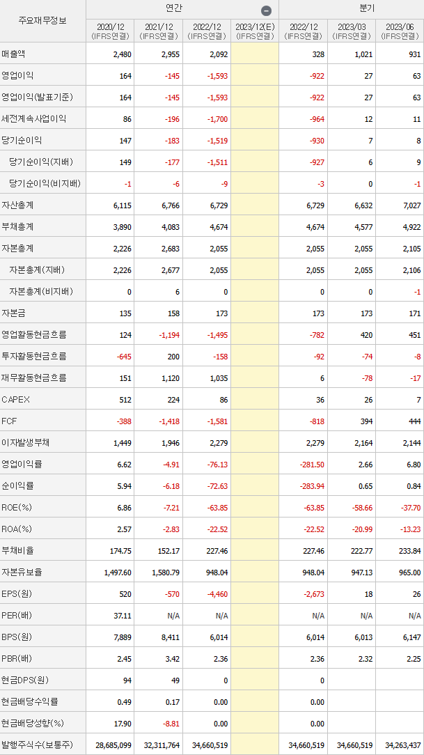 -매출은 22년 부터 흑자로 전환되어 꾸준한 매출, 영업이익 성장세를 보여주고 있습니다. 꾸준한 자산총계 증가와 조절가능한 부채총계로 보아 개선되고 있는 재무제표로 보여집니다. 또한 영업활동현금흐름 역시 늘고 있는 추세이며, ROE, ROA 증가와 PER이 5 정도로 보일 때 꾸준히 성장세를 보여주는 아직 고평가까지는 아닌 것으로 보여집니다.