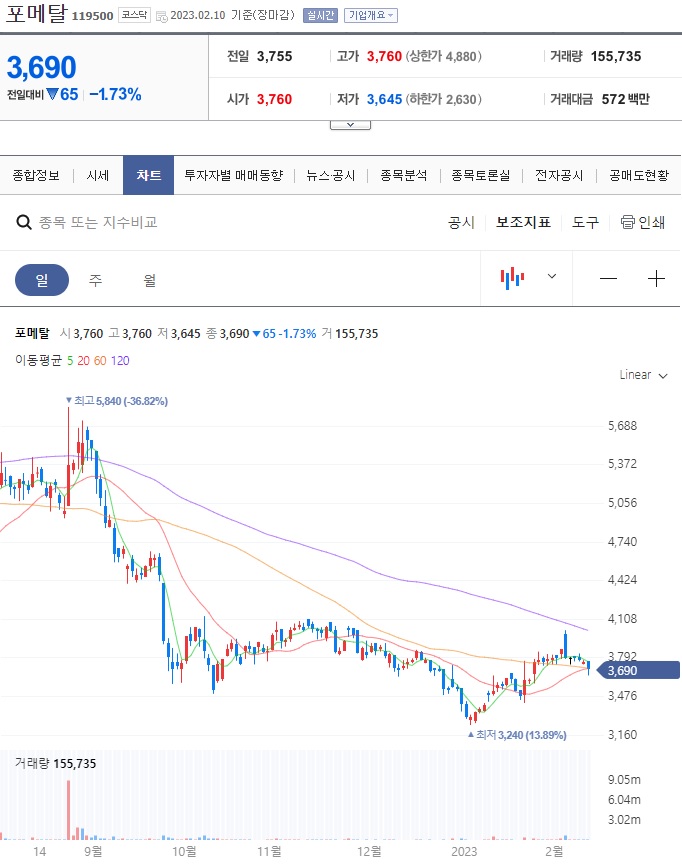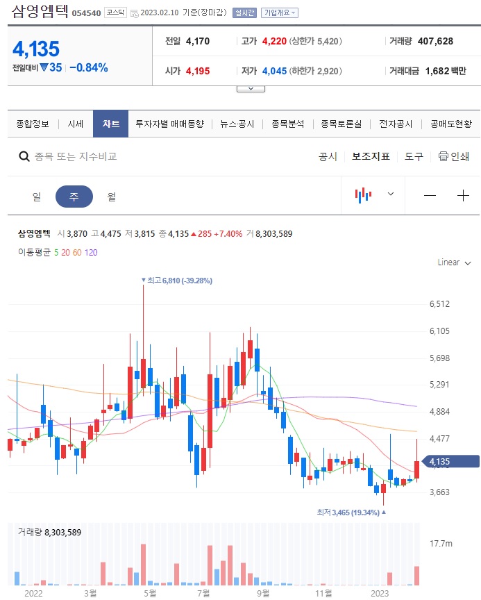 -저번 포항 규모 5.4 지진 이후 추가가 상한가를 찍은 모습을 보인 적이 있습니다만 현재는 박스권에 머물러 보합 상태를 보이고 있씁니다.