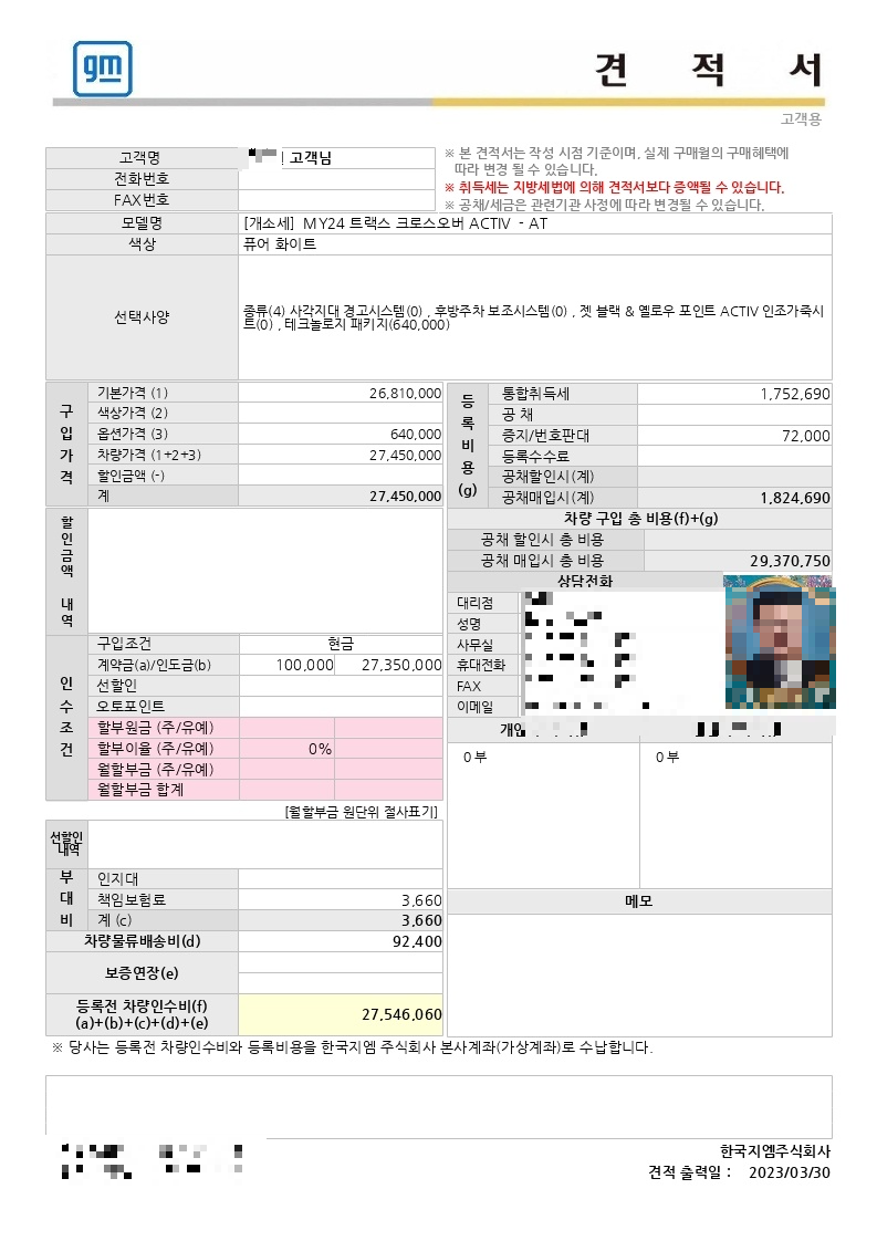 트랙스 크로스오버 너무 예뻐서 계약하고 왔어요