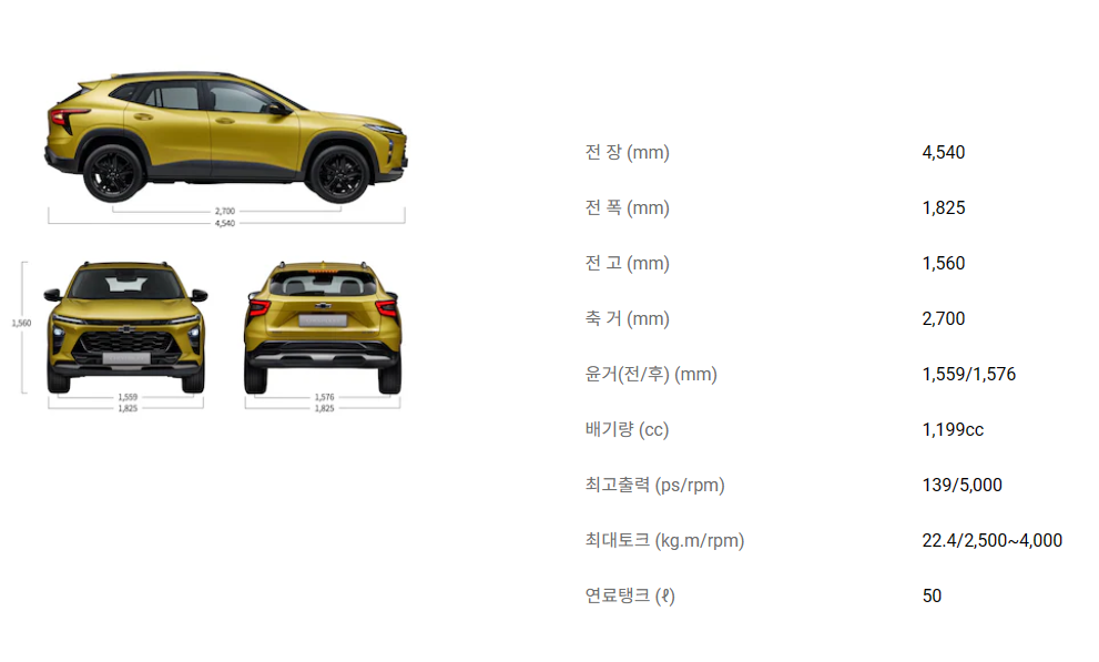 1. 트랙스 크로스오버 기본 사양 및 정보