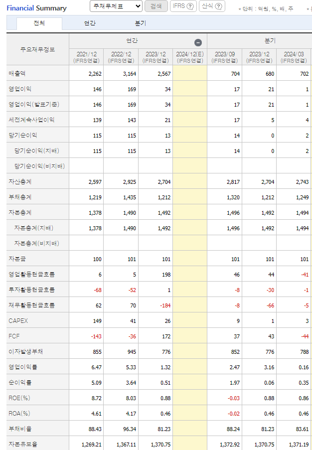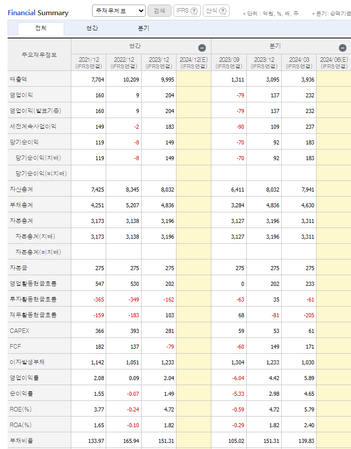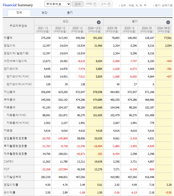 우크라이나-러시아 전쟁 등 국제 정세로 인해 천연자원 가격이 올랐다가 가격이 안정화되면서 영업이익, 순이익도 개선되는 모습을 보여주고 있습니다.