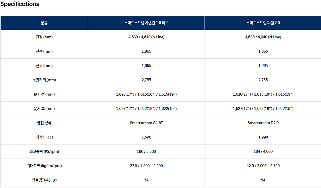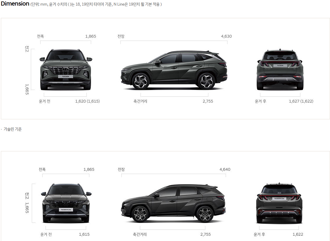 다음은 2023 투싼의 제원 및 정보에 대해 알아보겠습니다.