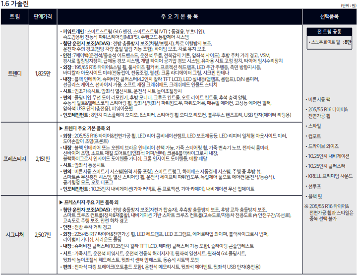 ●2023 K3 트림별 옵션 및 가격