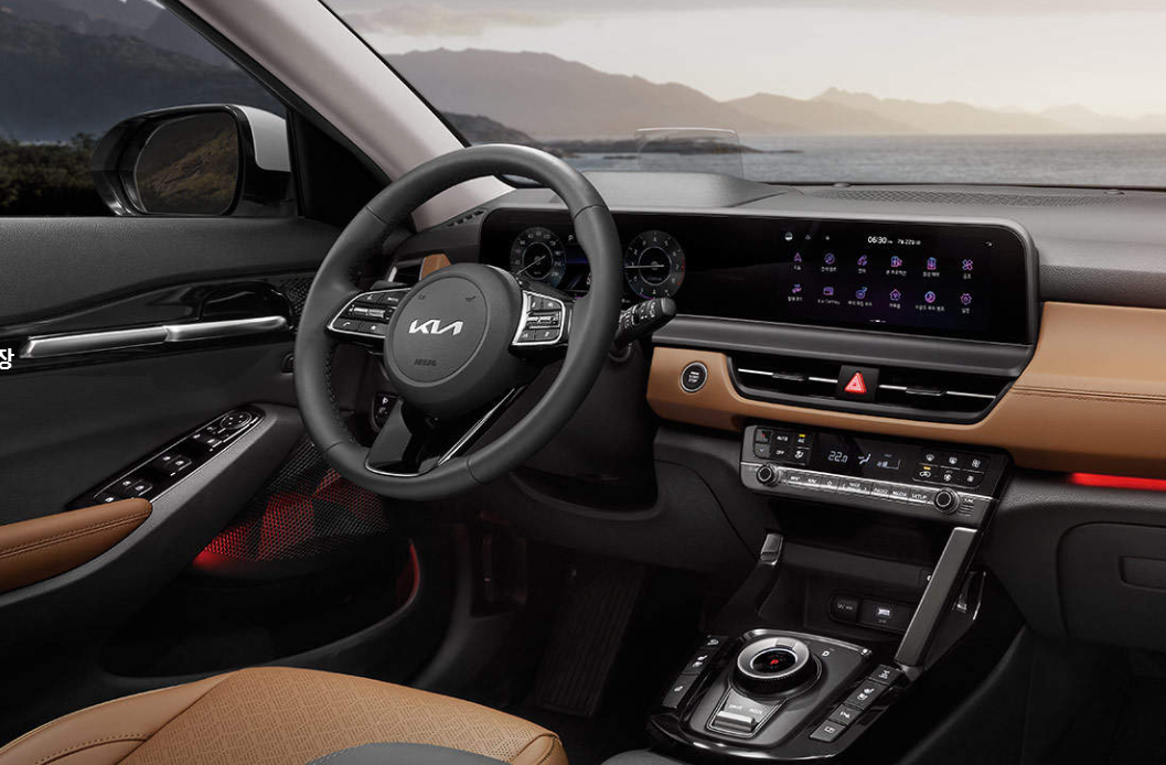옆면 역시 움푹 들어간 도어 중간 부분 덕에 좀 더 입체적인 디자인이 눈에 띕니다. 또한 투톤 컬러 배치가 가능하여 천장 색깔을 좀 더 어두운 색으로 하니 더 세련되 보이는 거 같습니다. 실내 역시 직접 확인해보았는데 카라멜 내부 인테리어가 정말 예쁘더라고요. 실내 디자인은 현대, 기아를 따라가기 힘든 거 같습니다.