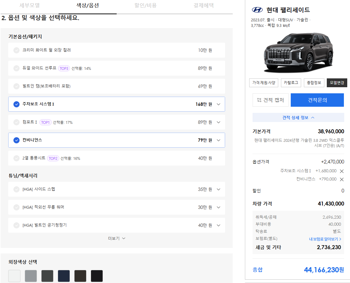 ■2024 팰리세이드 모의견적